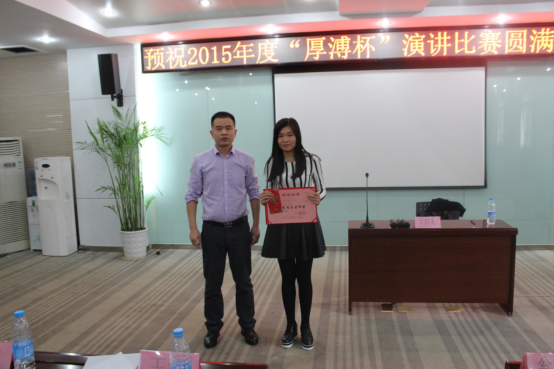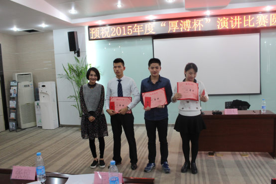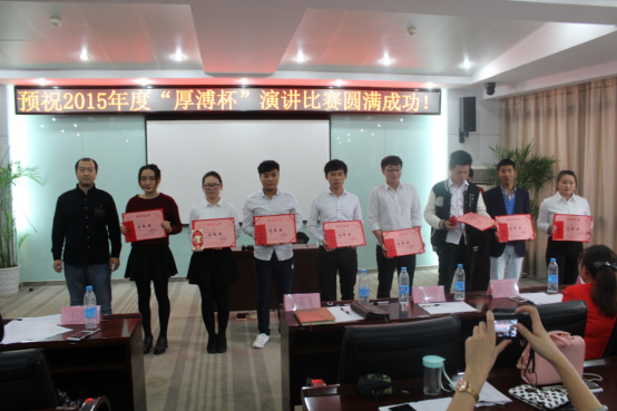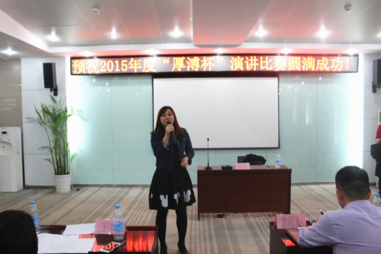 2015“厚溥杯”演講比賽由武漢厚溥教育科技有限公司技術中心主辦,技術中心于2015年10月初開始組織策劃,參賽學校及對象由荊州職業技術學院、湖北國土資源職業學院、湖北科技職業學院、武漢工程職業技術學院、黃岡職業技術學院、武漢外語外事職業學院、湖北三峽職業技術學院、武漢軟件工程職業學院、河南水利與環境職業學院、河南信息統計學院10所院校的在校學生組成,各校區于11月2號之前進行內部選拔,最終每個校區確定3名選手參加11月6號在光谷總部組織的最后的總決賽。