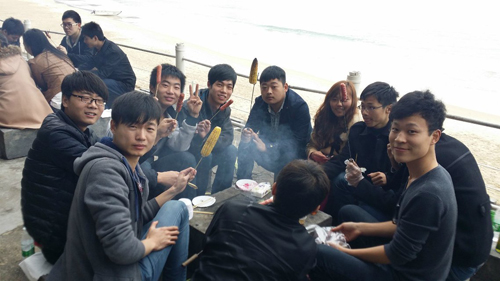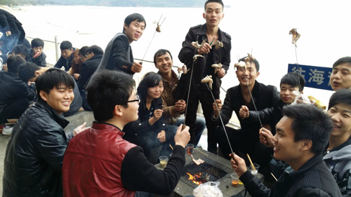 學(xué)生正在海邊燒烤