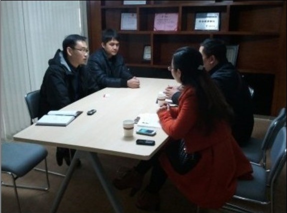 荊職學院老師與安通科技負責人正在洽談校企合作事宜
