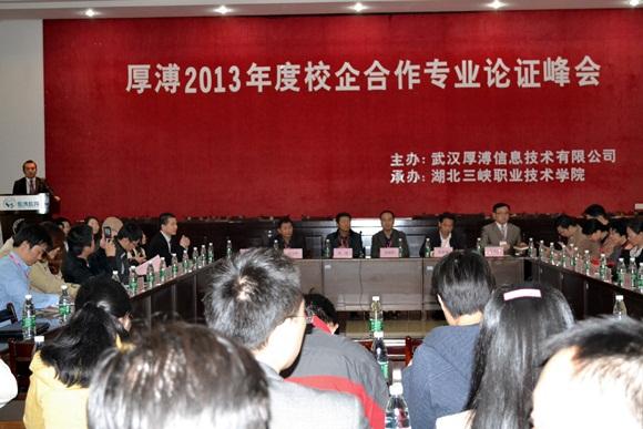 “厚溥2013年度校企合作論證峰會”于2013年11月2日下午在湖北三峽職業技術學院隆重舉行,此次論證峰會由武漢厚溥企業主辦,湖北三峽職業技術學院承辦。