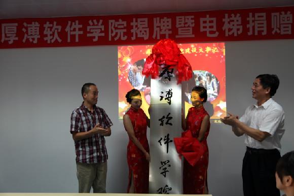 在熱烈的掌聲和歡快的音樂(lè)聲中,校黨委書記韓德鋒、武漢厚溥教育科技有限公司董事長(zhǎng)陳相陽(yáng)共同為“厚溥軟件學(xué)院”揭牌。隨后舉行了電梯捐贈(zèng)儀式。